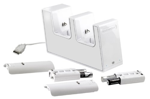 The Thrustmaster T-Charge Duo + for Nintendo Wii is an Automatic Charging & Storage Base for 2 Wii Remote Controllers. It is covered by a 2-year warranty. For customer service, please call Toll Free 1-866-889-5036.